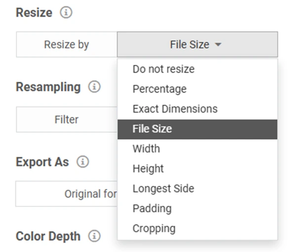 3- Em “Configure Batch” vá em “Resize” selecione “File Size”