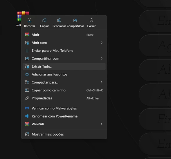 Se o WinRAR não estiver instalado em seu computador, clique com o botão direito na pasta WinRAR e selecione a opção “Extrair Tudo”. Certifique-se de escolher um local de fácil acesso para salvar as imagens extraídas.