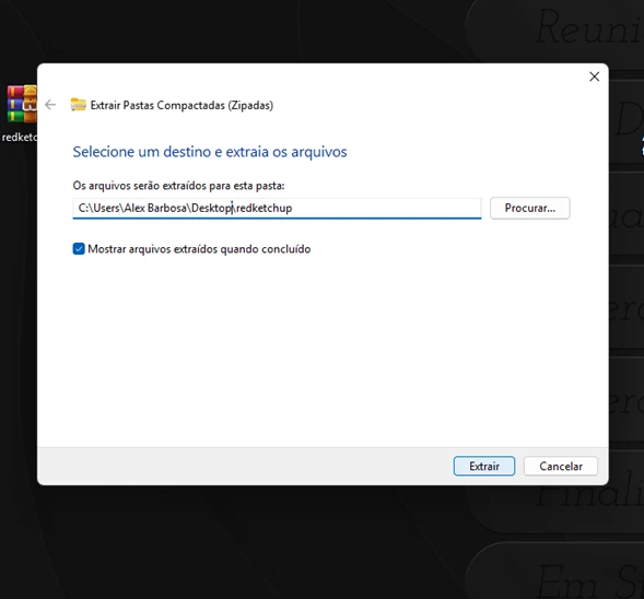 9- Na pasta dedicada agora se encontrara uma pasta tipo “WinRAR Zip” com o nome “redketchup”