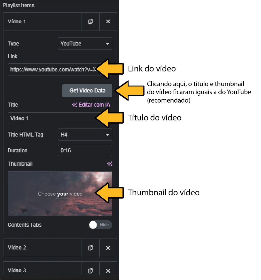 Clicando em “Get Video Data” o título e thumbnail do vídeo serão iguais a do YouTube.