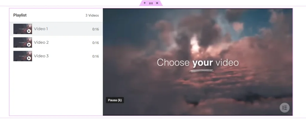 Para a playlist com vídeos do YouTube, passe o mouse em cima da playlist de vídeos e clique no ícone de lápis, isso abrirá um menu lateral para a edição.